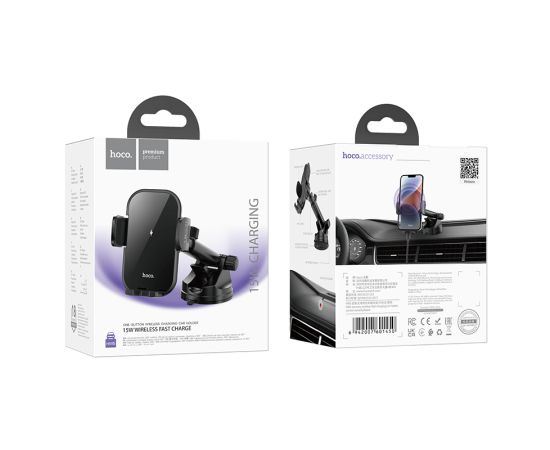 Держатель авто 4,5"-7,0" беспроводная зарядка Hoco HW5 (Black)