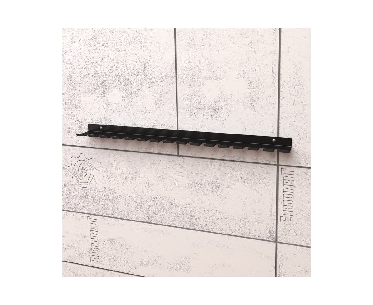Держатель имеет продуманную конструкцию, предусматривающую 15 мест для хранения различных пневматических инструментов, а также возможность разместить: ручные зажимы для сварочных работ, фиксация и удержание которых осуществляется за зажимной болт М8/М10.