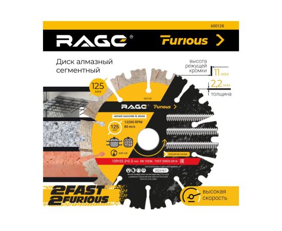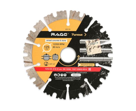 Диск алмазный сегментированный по железобетону и камню VIRA Rage Furious 600128 125 мм