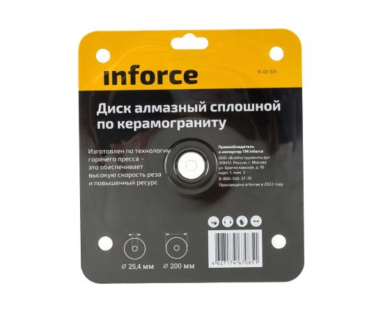 Диск алмазный сплошной керамогранит Inforce 11-01-511 200х25,4 мм