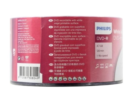 Диск DVD-R Philips DM4I6U50F/97 4.7Gb, 16x, Bulk (50), Printable