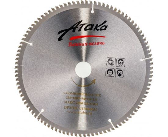 Диск пильный АТАКА 8077910 255*100T*30 алюминий пластик ч/рез профи