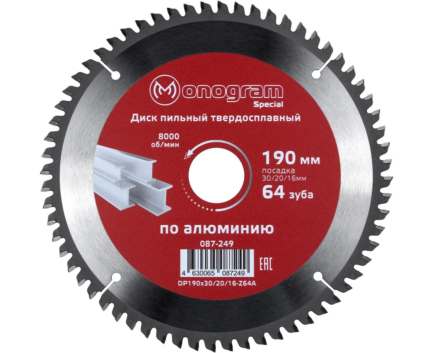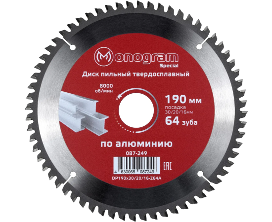 Диск пильный по дер. Monogram 087-249 d-190мм d(посад.)-30мм (циркулярные пилы) (упак. 1шт)