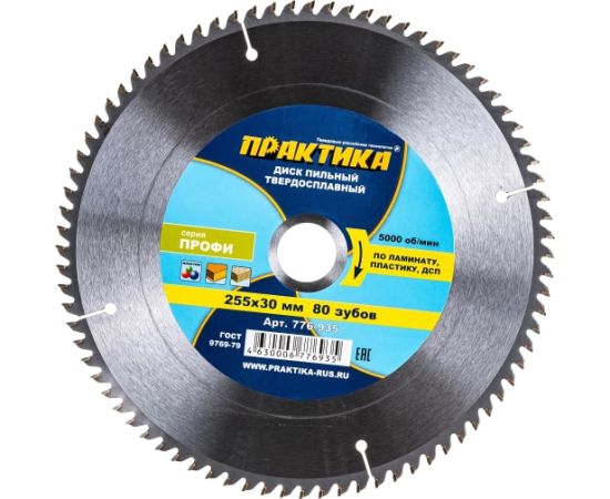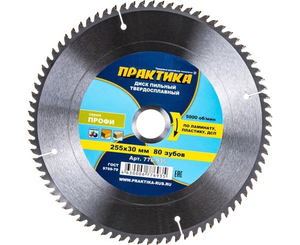 Диск пильный твёрдосплавный по ламинату Практика 255 х 30 мм (776-935) 80 зубов