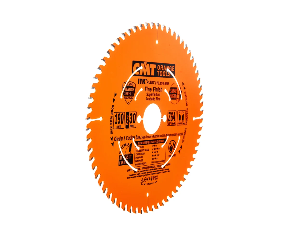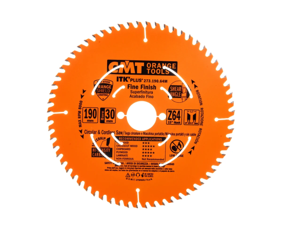 Диск пильный тонкий пропил, торцовка CMT 273.190.64M 190x30/20/16x1,7/1,1 Z64 a-15град ATB+S