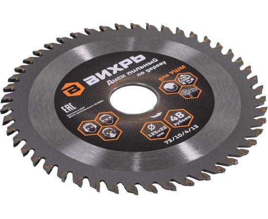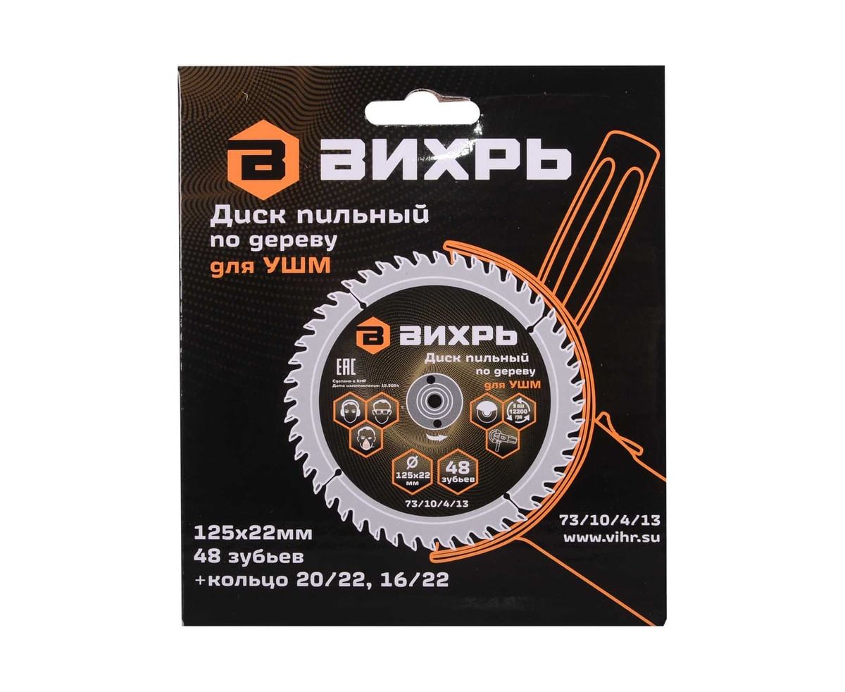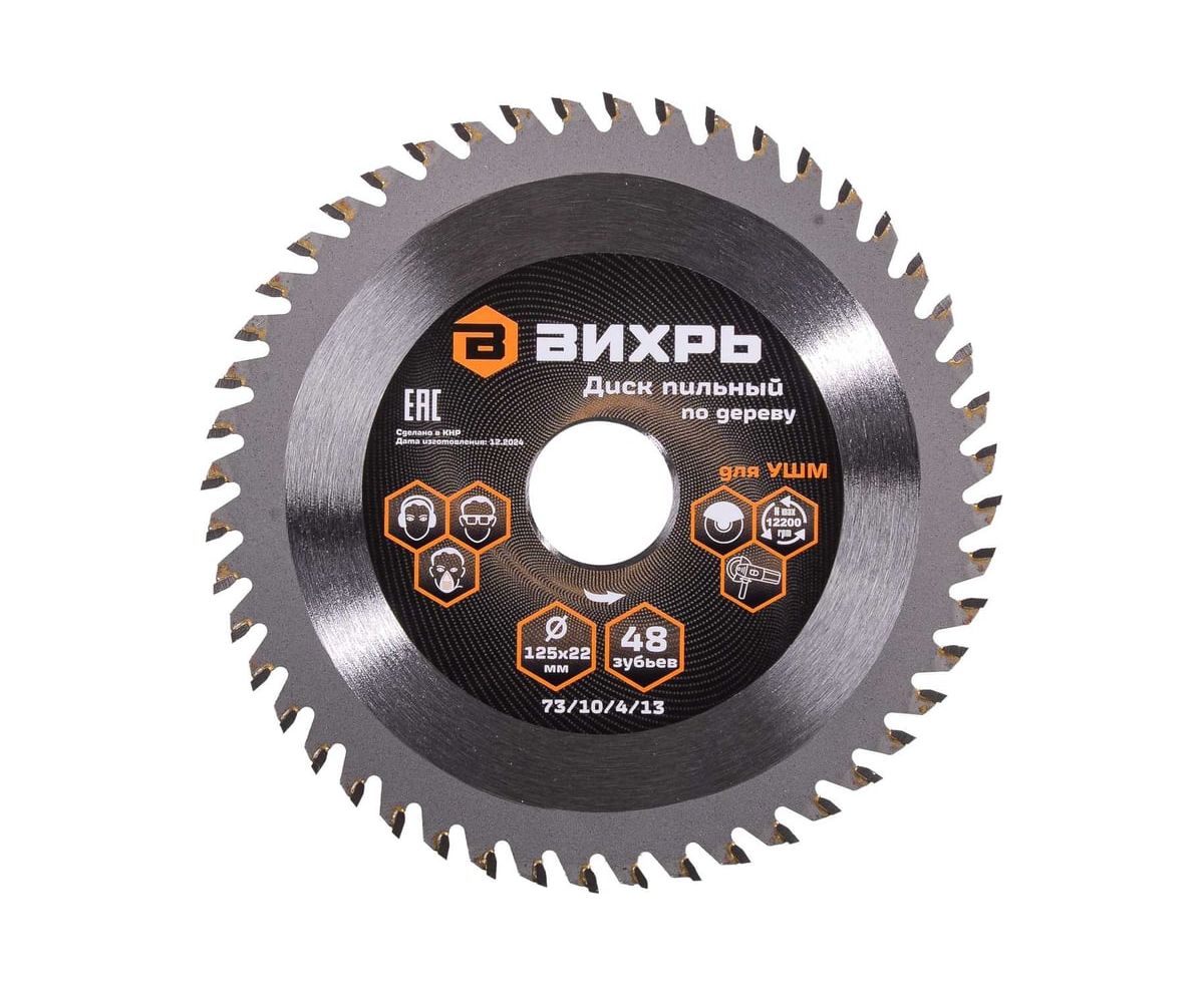 Диск пильный Вихрь 73/10/4/13 по дереву для УШМ 125х22мм, 48 зубьев+кольцо 20/22, 16/22