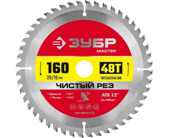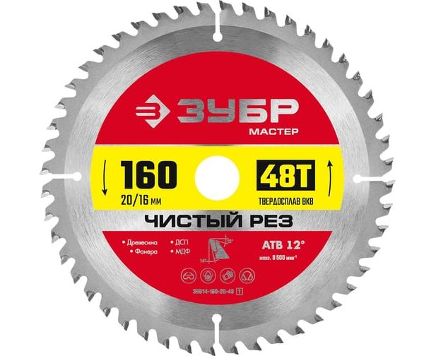 Диск пильный Зубр 36914-160-20-48 z01 по дереву d-160мм d(посад.)-20мм (торцовочные пилы)
