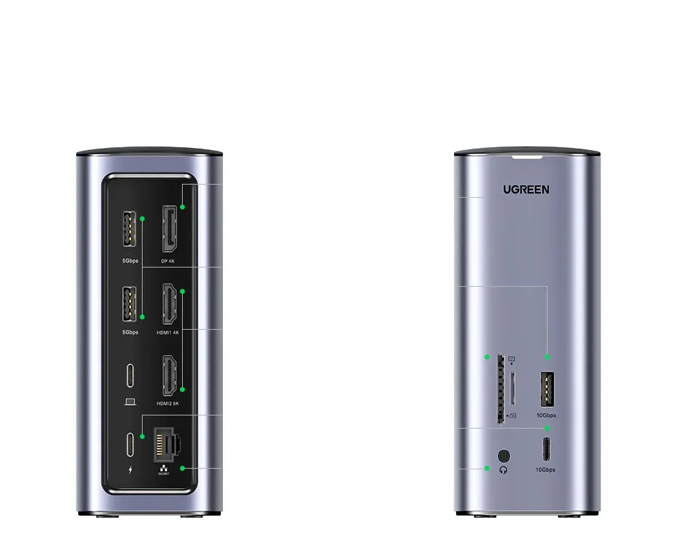 Док-станция UGREEN CM555 (90325) USB-C Multifunction Docking Station Pro серый