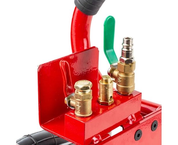 Рассчитан на подключение к компрессору, подающему сжатый воздух под давлением от 6 до 12 Bar. Устройство приводится в действие путем открытия крана подачи, расположенного на конце управляющей рукоятки.