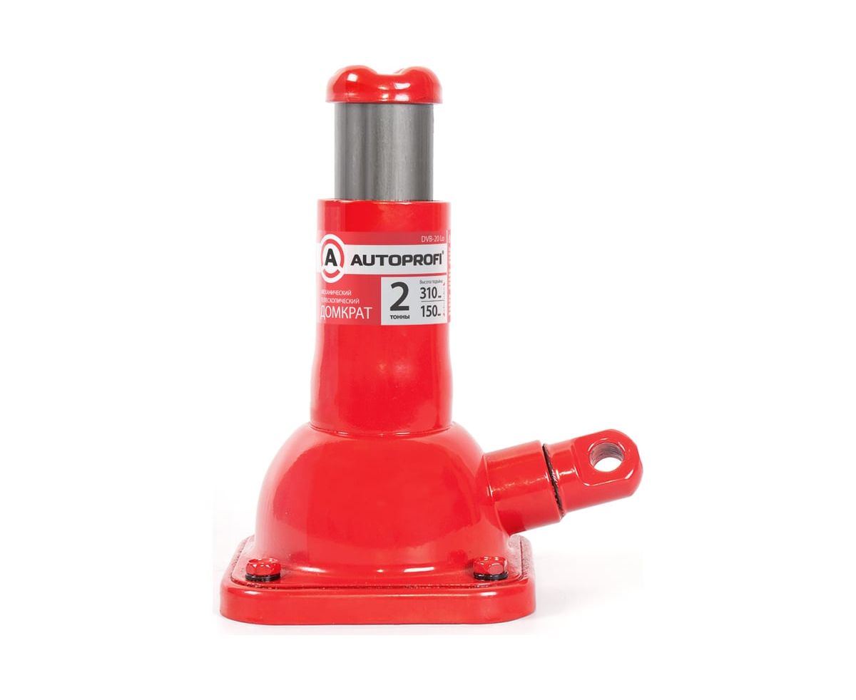 Автомобильный механический домкрат AUTOPROFI DVB-20-Lo - настоящий находка для любого владельца автомобиля. Он представляет собой компактное решение для подъема автомобилей при ремонте подвески или замене колеса, а так же является отличным выбором для использования в гараже или на шиномонтаже. Бутылочный домкрат станет незаменимым помощником при подъеме транспортного средства массой до 2 тонн. Винтовой домкрат с рабочей высотой от 150 мм до 310 мм. С домкратом можно работать, не сгибаясь. Длинный вороток дает длину рычага в 85 см. Опора у домкрата телескопическая и поднимает груз на высоту до 308 мм. Корпус домкрата стальной с антикоррозийным покрытием. Яркий красный цвет будет заметен даже в темное время суток. Тип домкрата — механический. Максимальный груз — 2 тонны. Это обеспечивает возможность поднять практически любое авто без каких-либо проблем. После подъема груза он должен быть зафиксирован на страховочных опорах (продаются отдельно). Также небольшие размеры позволяют удобно перевозить домкрат в багажнике и всегда быть под рукой. Он идеально подойдет для ремонтно-монтажных работ с автомобилем. Такой надежный домкрат станет вашим верным спутником при проведении различных работ с вашим автомобилем. Это надежный и прочный инструмент, который поможет Вам быстро решить Ваши ремонтные задачи в автомастерской, в гараже и в других местах.