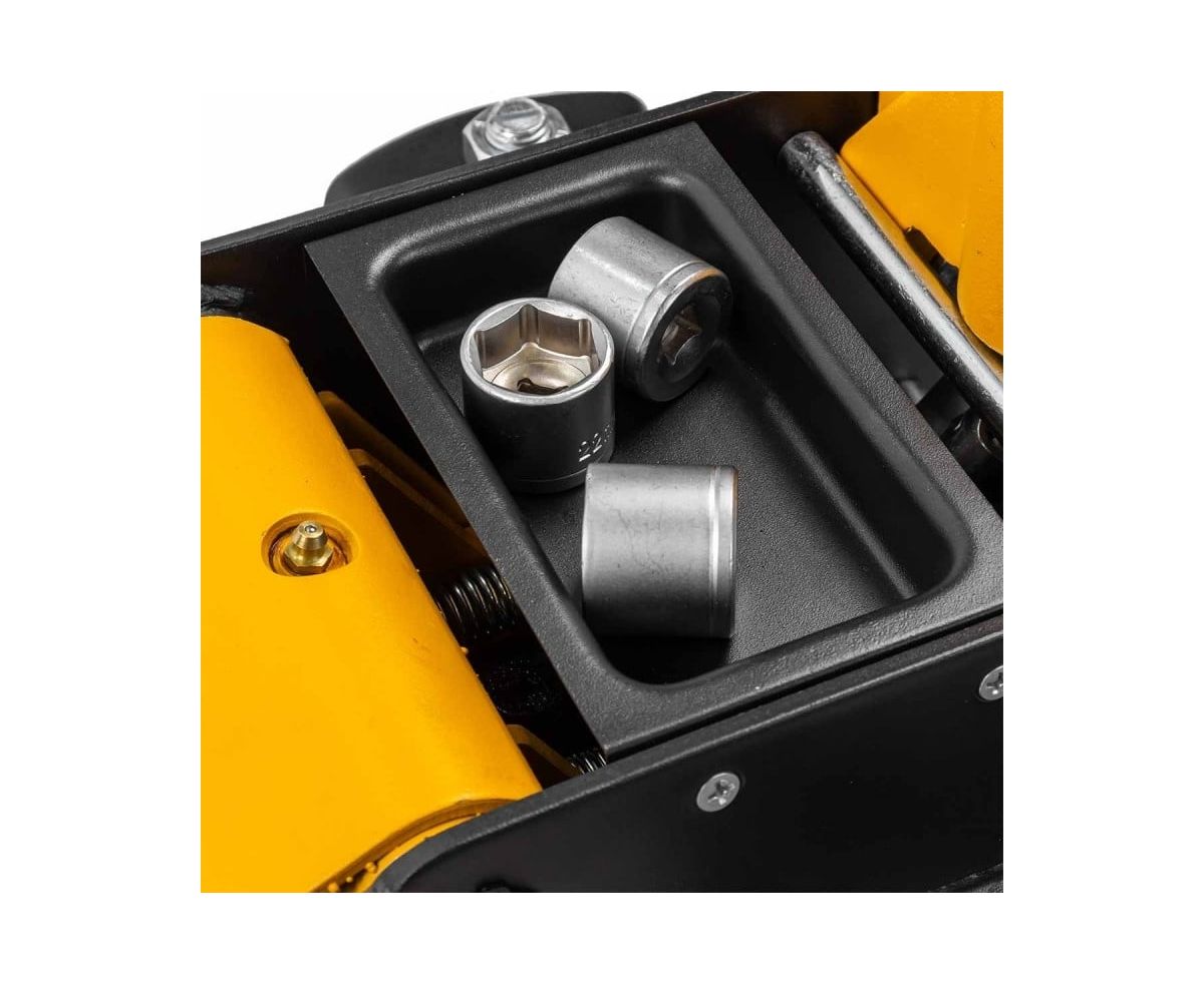 Встроенный лоток позволяет разместить колесные болты во время ремонтных работ. Домкрат имеет два поворотных колеса на 360 градусов для плавной маневренности и 2 фиксированных для устойчивости. Гидравлическое масло работает в широком диапазоне температур (+/- 50 °C). Это надежный и прочный инструмент, он поможет Вам быстро и безопасно поднять транспортное средство для проведения ремонтных работ.