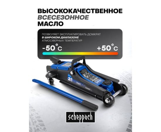 Автомобильный подкатной домкрат Scheppach 2,5 т — это надежное и профессиональное оборудование, предназначенное для подъема транспортных средств при ремонте, обслуживании или замене шин. Благодаря прочной конструкции и продуманным деталям, он идеально подходит для автосервисов, шиномонтажных мастерских и домашнего гаража. Особенно эффективен при работе с автомобилями с низким клиренсом.