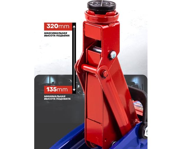 Высота подхвата — высота подхвата в 135 мм обеспечивает возможность использования домкрата даже с низкими автомобилями.
