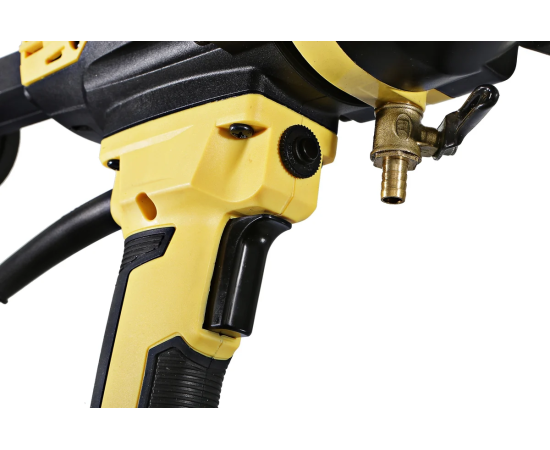 Дрель алмазного сверления Hanskonner HID2180M — компактный и мощный электроинструмент с надежной конструкцией для сверления алмазными коронками отверстий в таких материалах: бетон, железобетон, искусственный и натуральный камень, кирпич. Подключив инструмент к водопроводному крану можно сократить запыленность рабочей зоны, а также износ алмазных коронок и дрели. Данная модель оснащена предохранительной муфтой, срабатывающей при заклинивании коронки, и термозащитой работающей при других видах перегруженности.