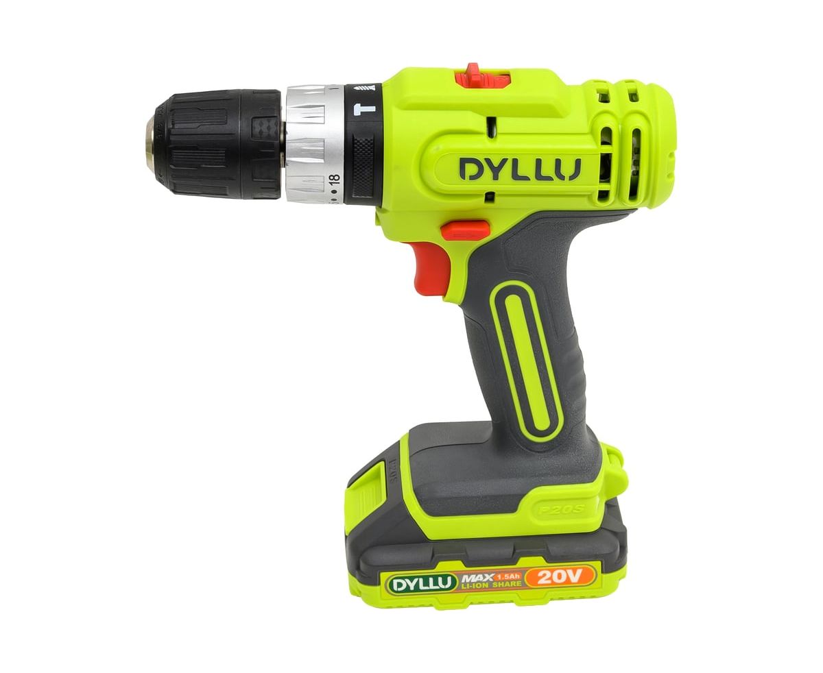 Аккумуляторная дрель-шуруповерт DYLLU DTCDP521 также работает от напряжения 20В и имеет аналогичные характеристики: скорость холостого хода 0–400–0–1500 об/мин, максимальный крутящий момент 35Нм и пластиковый патрон с диапазоном зажима 0.8–10 мм. Регулировка крутящего момента (15+1) и двухскоростной режим работы обеспечивают гибкость при выполнении различных задач. Встроенная светодиодная подсветка помогает работать в условиях плохого освещения. В комплект входит аккумулятор емкостью 1.5Ач и зарядное устройство. Встроенная светодиодная подсветка.