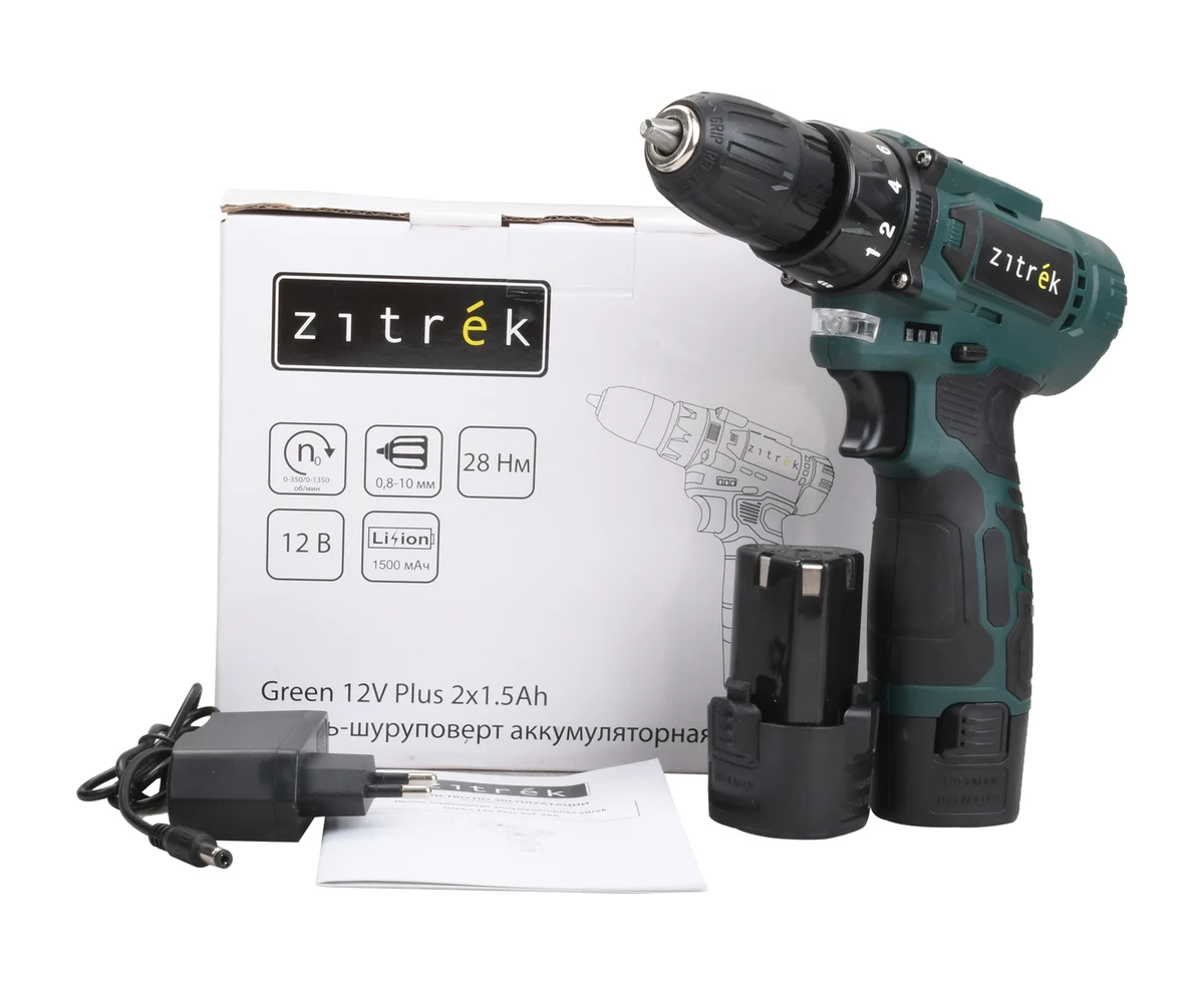 Дрель-шуруповерт Zitrek Green 12V Plus (085-1014) аккумуляторная с АКБ и з/у