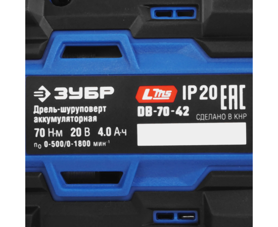 ЗУБР Профессионал 20 В, 70 Н·м, 2 АКБ LMS (4 А·ч), бесщеточная дрель-шуруповерт, кейс DB-70-42 - ЗУБР Профессионал 20 В, 70 Н·м, 2 АКБ LMS (2 А·ч), бесщеточная дрель-шуруповерт, кейс DB-70-22 - высокотехнологичная модель в новой линейке аккумуляторного инструмента ЗУБР серии LMS.