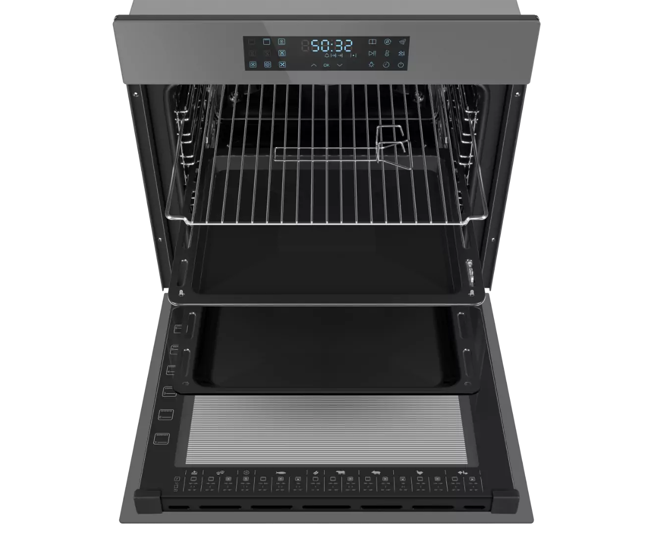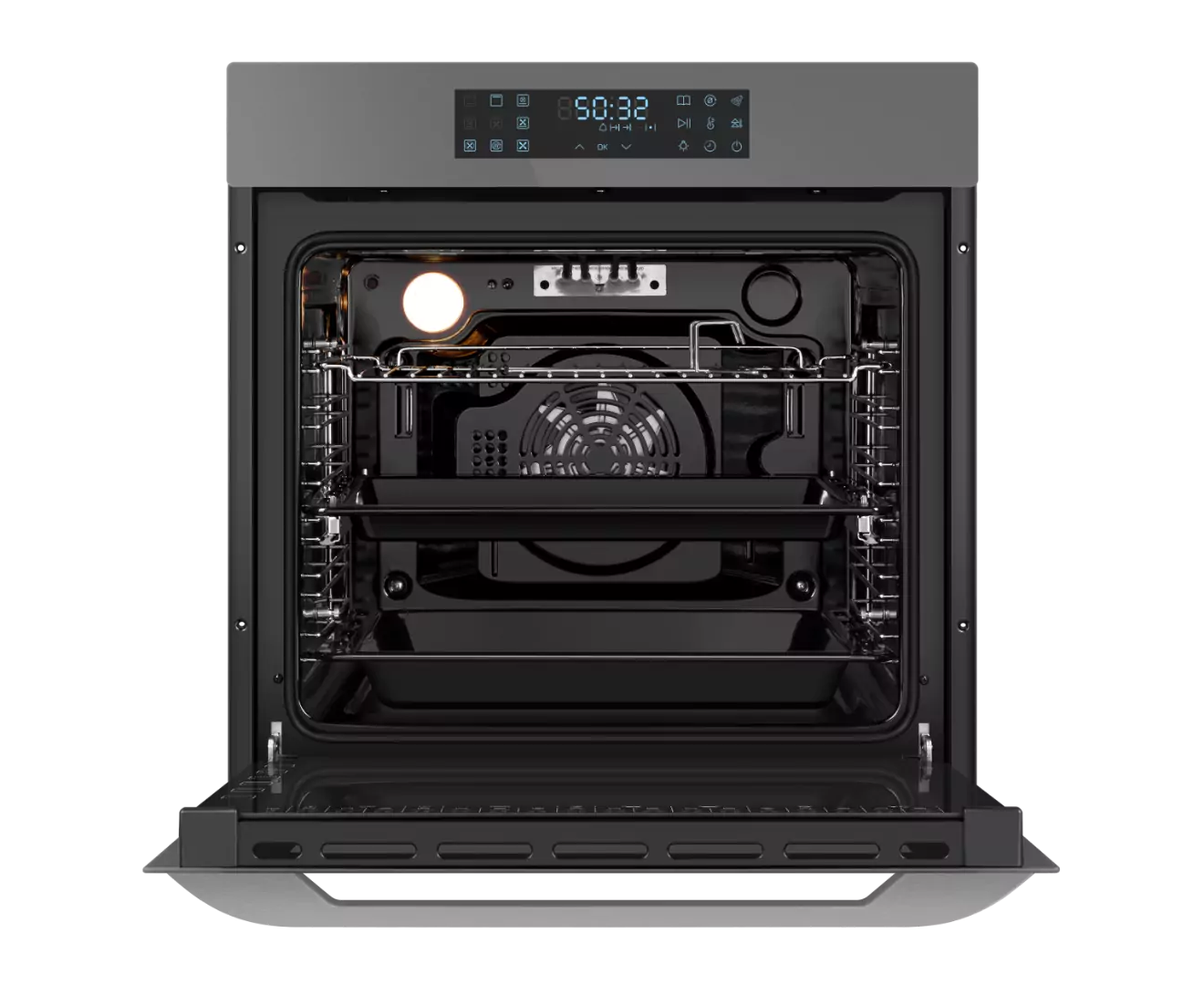 Удобная и безопасная установка противня и его извлечение. Телескопические направляющие облегчают использование духовки: противень не упадет, даже если выдвинут полностью.