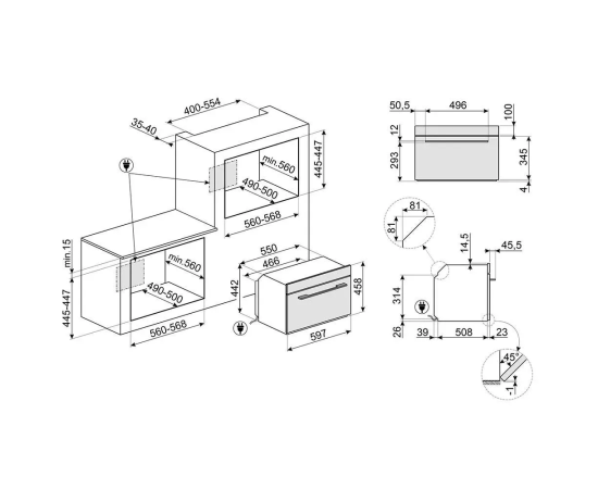 Духовой шкаф SMEG SO4102M1B3 Linea компактный высотой 45см, черный