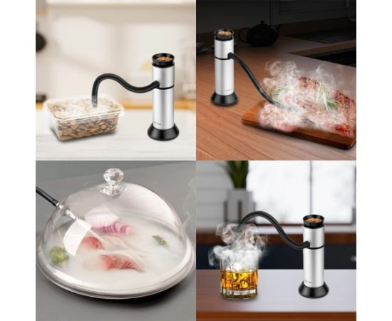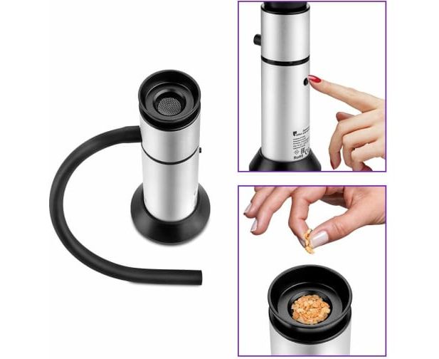 Пригоден для использования в помещении - дымогенератор устойчиво стоит на столе, а эластичная коптильная трубка длиной 25 см позволяет окуривать продукты в любой посуде