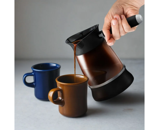 Турка включается при установке на базу и не отключается автоматически. Для выключения турку необходимо снять с базы, когда на кофе поднялась пенка. У турки есть световой индикатор, который горит во время работы турки.