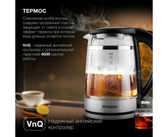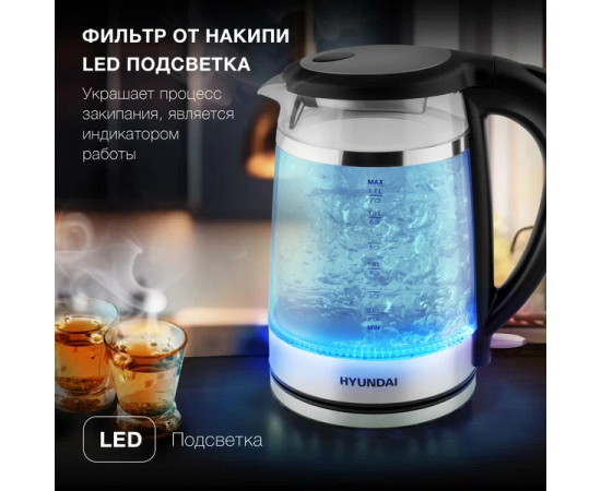 Электрочайник Hyundai HYK-G3036 черный/прозрачный