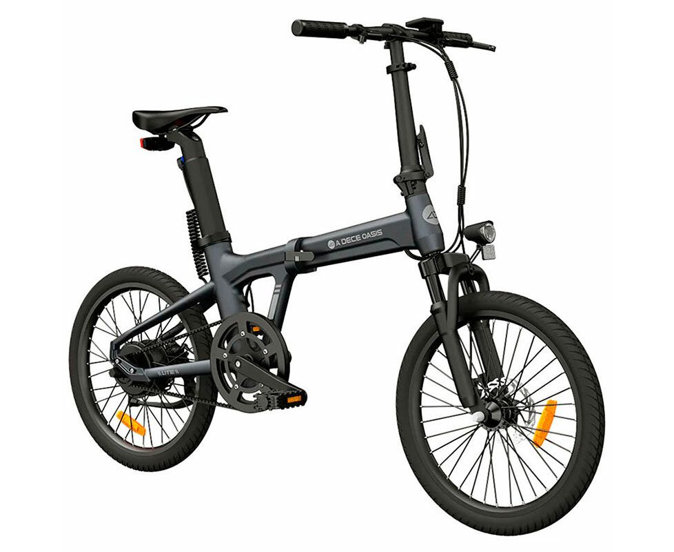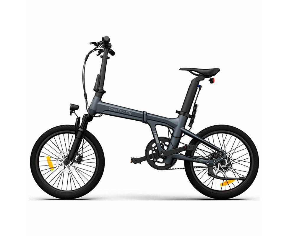 Электровелосипед ADO A20S Lite с амортизационной вилкой, карбоновым ремнем и аккумулятором Samsung для комфортных городских поездок.