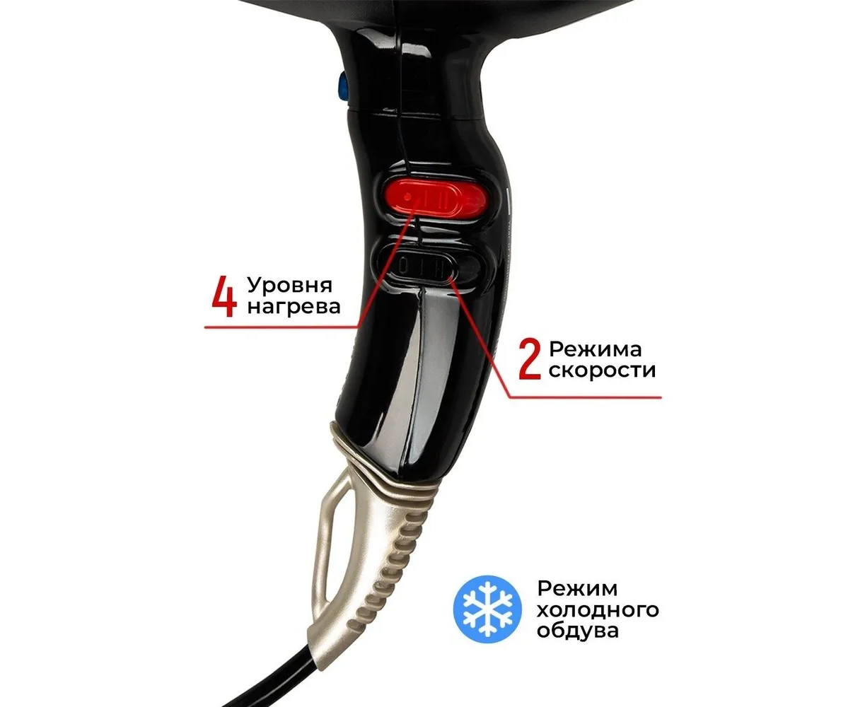 Вес фена 555 грамм оптимально распределяется и не ощущается в руке. Решетка воздухозаборника легко снимается и очищается.