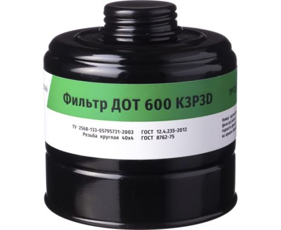 Технические характеристики фильтра для противогаза ДОТ 600 К3Р3D 102-011-0013