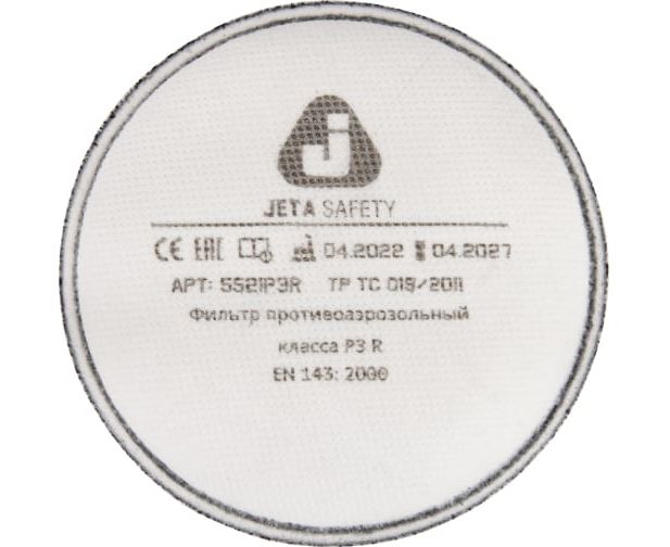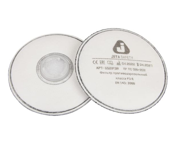 Противоаэрозольный фильтр класса P3 R Jeta Safety, в упаковке 2 шт 5521P3R предназначен для использования с масками и полумасками Jeta Safety 5950, 6950, 6500 и 5500Р.