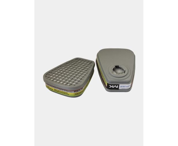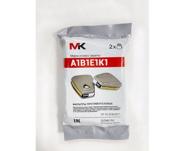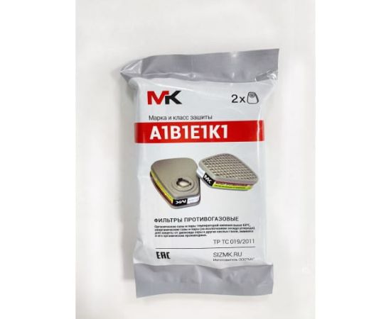 Противогазовый фильтр МК (12242) класс защиты А1В1Е1К1, модель 088 МК088 предназначен для очистки вдыхаемого воздуха от органических газов и паров с температурой кипения выше 65 град., неорганических газов и паров (за исключением оксида углерода), диоксида серы и других кислых газов, аммиака и его органических производных в составе фильтрующего противогаза MK 85 (полнолицевая маска) или фильтрующего респиратора МК 75 (силиконовая полумаска). Защищает от красок, растворителей, эмалей, герметика, клея, лаков, спирта, бензина, керосина, смол, в том числе эпоксидных, галоидорганических соединений, нитросоединений бензола и его гомологов, анилина, кетонов, тетраэтилсвинца, гудрона, хлора, фтора, брома, гидрида серы, арсинов, фосфористого, хлористого, бромистого, фтористого водорода, диоксида серы, паров серной, уксусной, муравьиной, азотной, фосфорной кислоты, аммиака метиламина, метана и других запахов класса и концентрации АBEK1.