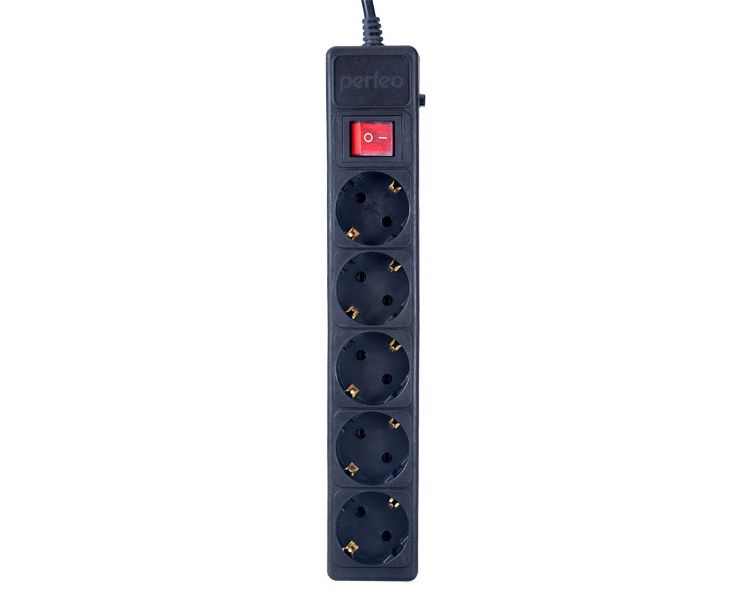 Фильтр-удлинитель сетевой 5 розеток 3.0м Perfeo "POWER+", черный (PF-PP-5/3,0-B)