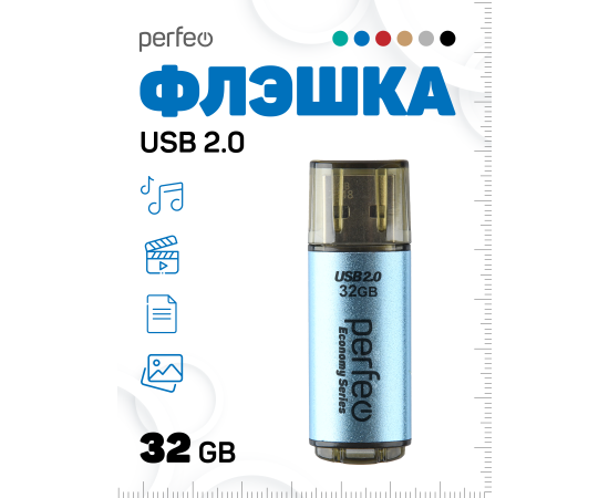 Флешка Perfeo 32GB E04 голубая economy series