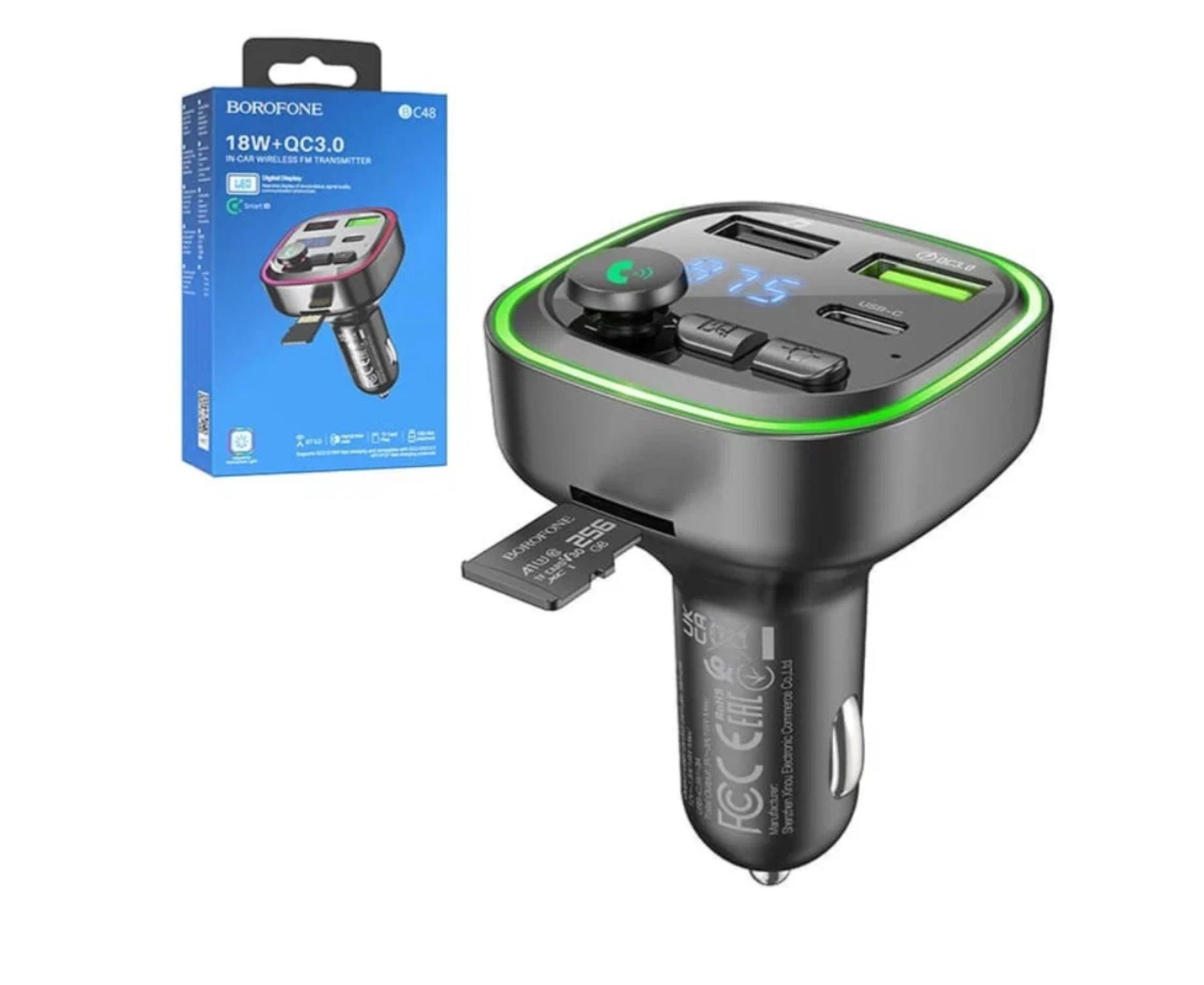 АЗУ Bluetooth FM-Трансмиттер BOROFONE BC48 Broad QC3.0 (черный)