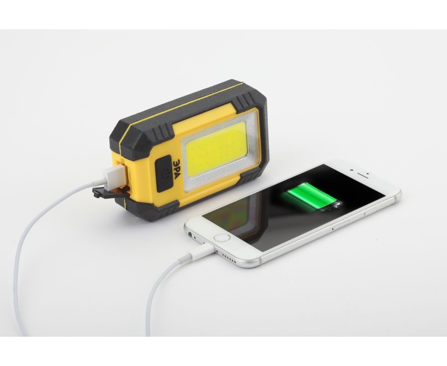 Особенности: COB диод, используется как источник питания (powerbank), Li аккумулятор 6 Ач, 3 режима, магнит, крючок, подставка, зарядка от USB (провод в комплекте)
