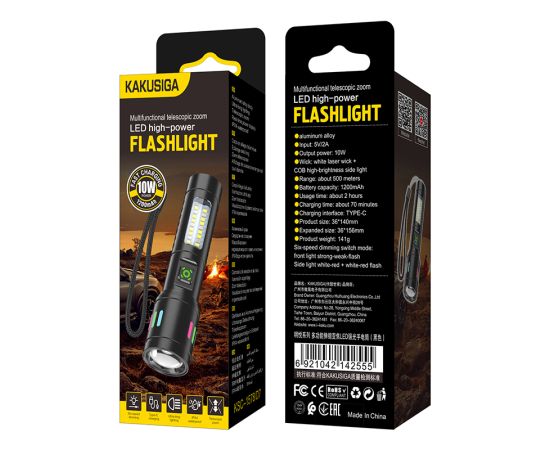 Фонарь KAKUSIGA KSC-1578 6 режимов type-c зарядка black
