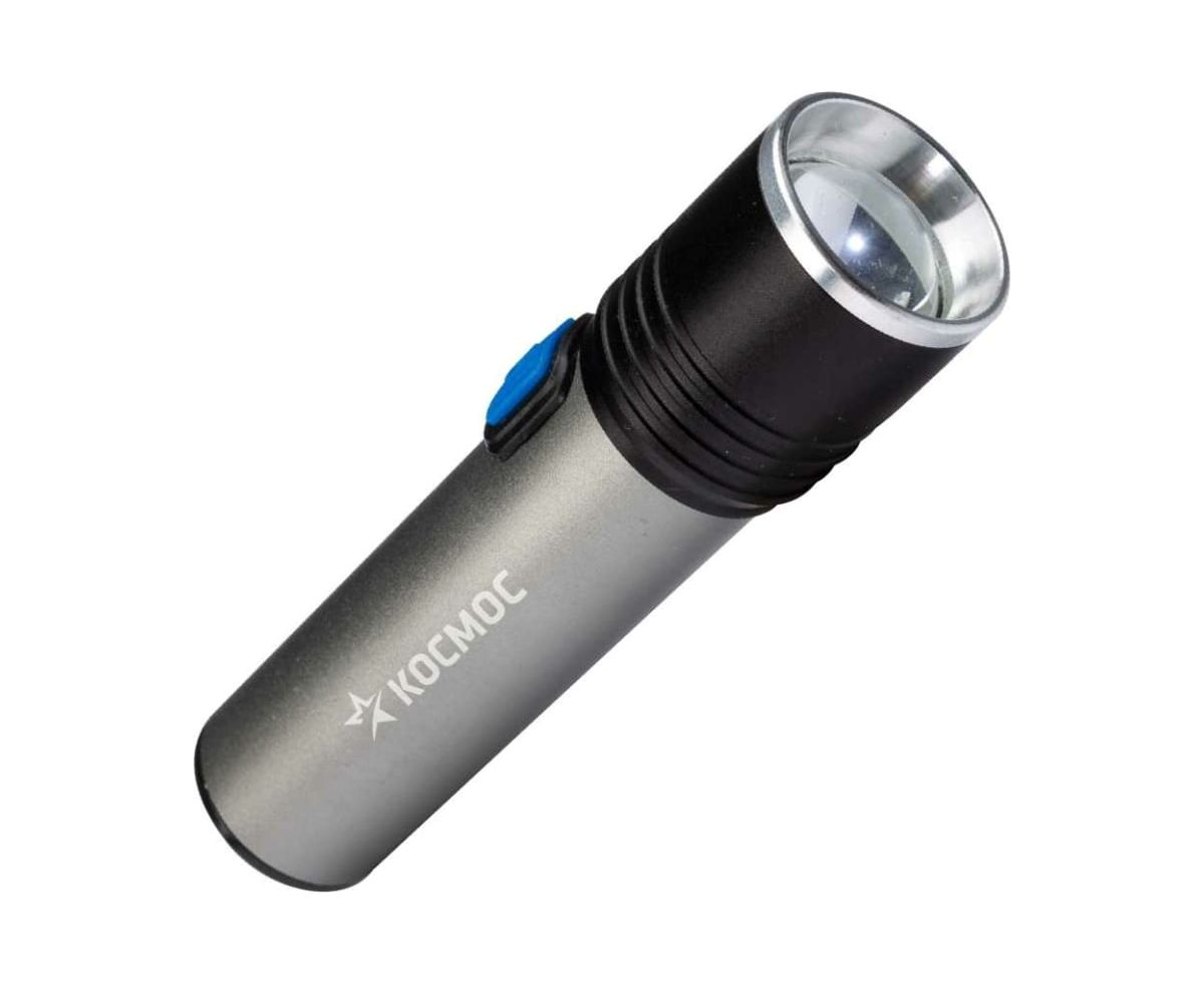 Ручной аккумуляторный фонарь КОСМОС 3Вт LED, линза, зум, Li-ion18650 1200mAh, анодированный алюминий, USB-шнур KOS111Lit выполнен в минималистичном металлическом корпусе. Источник питания: Li-ion аккумулятор 18650 3,7В 1200 мА/ч (встроенный).