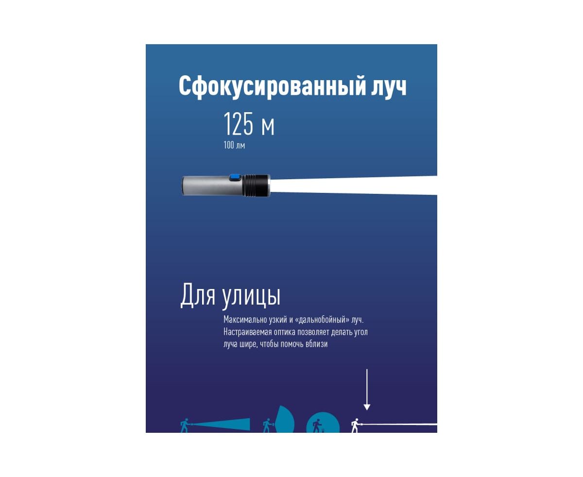 -Регулируемая оптика позволяет настроить ширину луча.