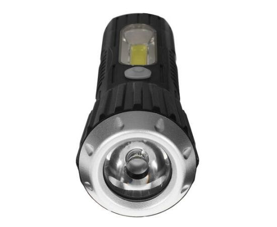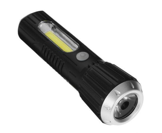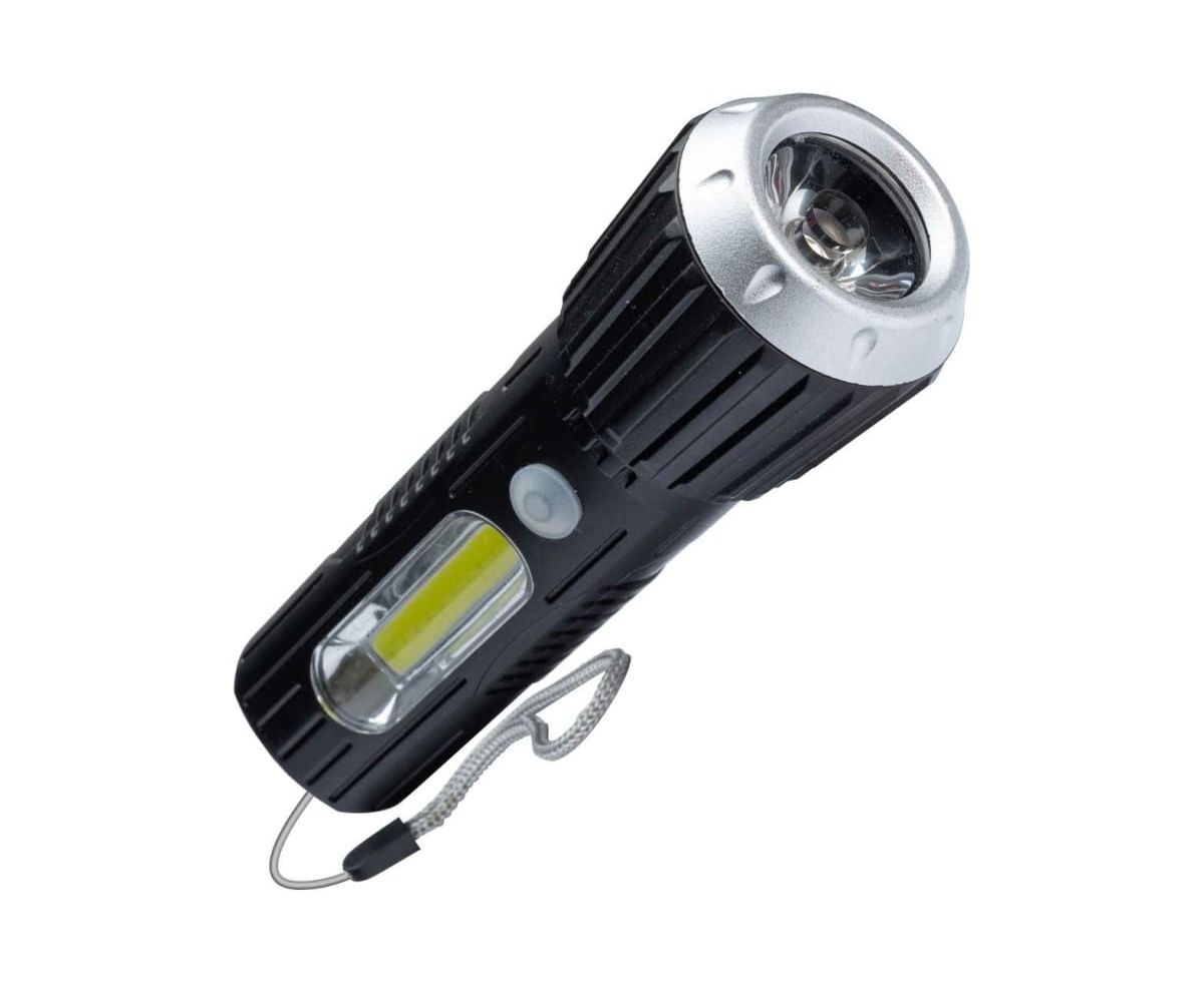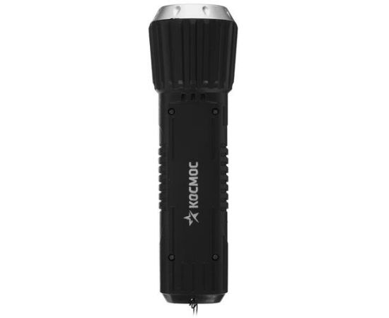 Ручной аккумуляторный фонарь КОСМОС 1Вт LED+2Вт COB, коллиматорная линза, Li-ion 18650 1000mAh, ABS-пластик, USB шнур KOS114Lit с защитой от дождя. Совмещает луч фонаря (направленный свет) и широкий свет (освещает широкое пространство с одной стороны). Источник питания: Li-ion аккумулятор 18650 3,7В 1000 мА/ч (встроенный).
