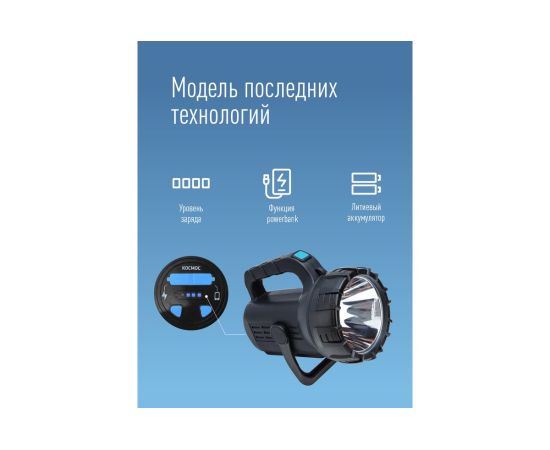 Фонарь КОСМОС Premium 5Вт направленный свет, 5Вт СОВ, литий 3600mAh, MICRO USB шнур в комплекте KOSAc8010WLith имеет умный индикатор зарядки покажет, сколько именно энергии осталось. Удобный переключатель: несмотря на 7 режимов света, фонарь легко включить и выключить длительным нажатием. Функция powerbank: подзарядка мобильных устройств. Подставка с регулируемым углом. Заряд фонаря от USB позволит использовать подзарядку даже в автомобиле или на природе от powerbank.