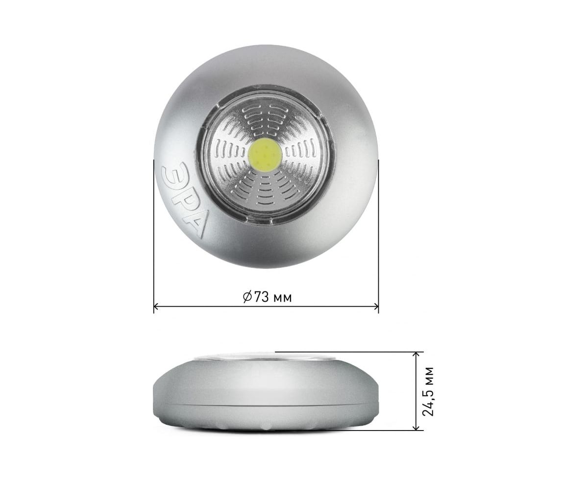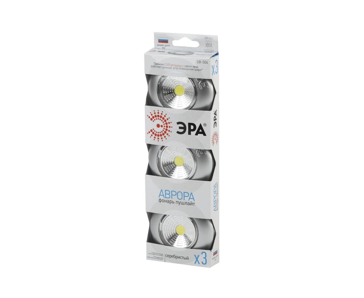Фонарь ЭРА SB-504 NEW пушлайт Аврора COB, 3xAAA, серебристый, 3шт Б0031043 - удобный инструмент для аварийного или интерьерного освещения. Фонарь светит ярким белым светом, оснащён 4 светодиодами последнего поколения. Такие светодиоды не тускнеют со временем и не требуют замены. Экологичный ударопрочный пластик выполнен в спокойных классических цветах, которые впишутся в любой интерьер.