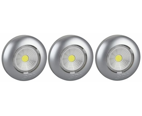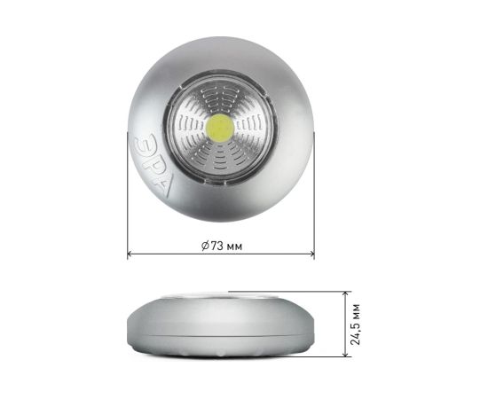 Фонарь выполнен в серебристом цвете. Это простой многофункциональный светильник, который не требует никаких проводов или розеток. В наборе три фонаря с удобной установкой и энергосберегающей конструкцией, это действительно набор универсальных светодиодных фонарей. Фонарь может использоваться не только как подсветка или аварийный свет, но и как ночной светильник, поскольку светит ровным ярким светом с широким углом освещения длительное время.