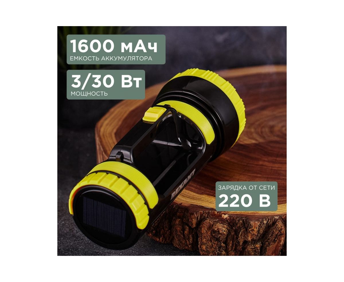 Преимущества REXANT с боковым светом, powerbank, солнечная батарея 75-7822