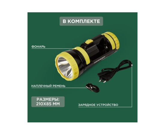 Благодаря емкому аккумулятору, фонарь может работать на протяжении 5 часов без подзарядки.