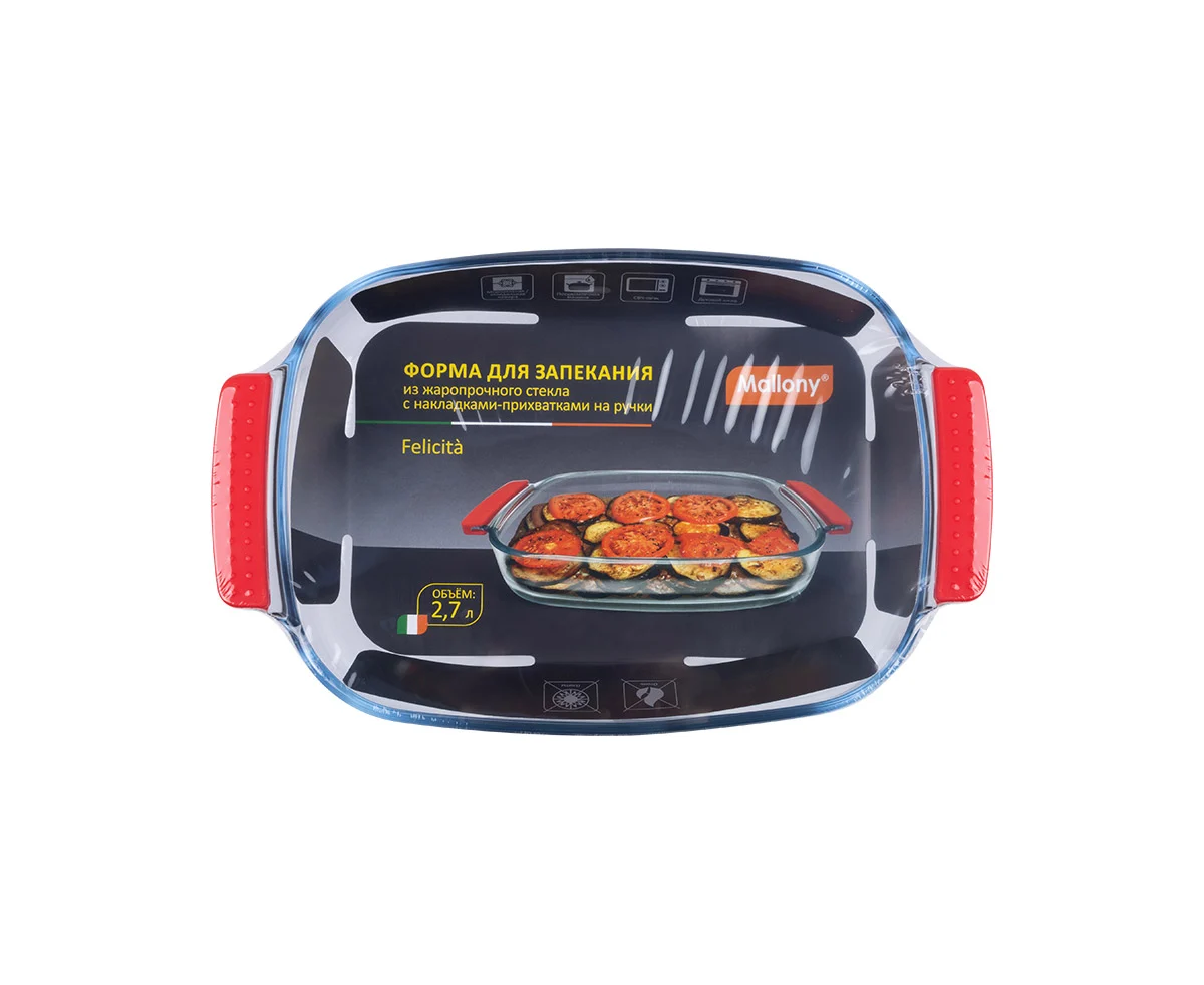Форма для запекания Felicita, объём: 2,7 л, с силиконовыми накладками-прихватками на ручки, жаропрочное стекло, прямоугольной формы.