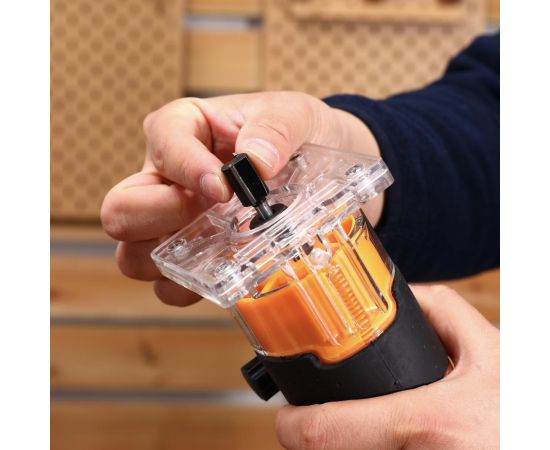 Фрезер электрический DEKO DKR850W с набором фрез применяется в различных столярных и плотницких работах для обработки кромок и профилей, фасок в деревянных конструкциях, для изготовления пазов и т.д.