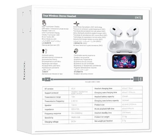 Блютуз гарнитура TWS Hoco EW72/ ANC / сенсорный экран / Белый