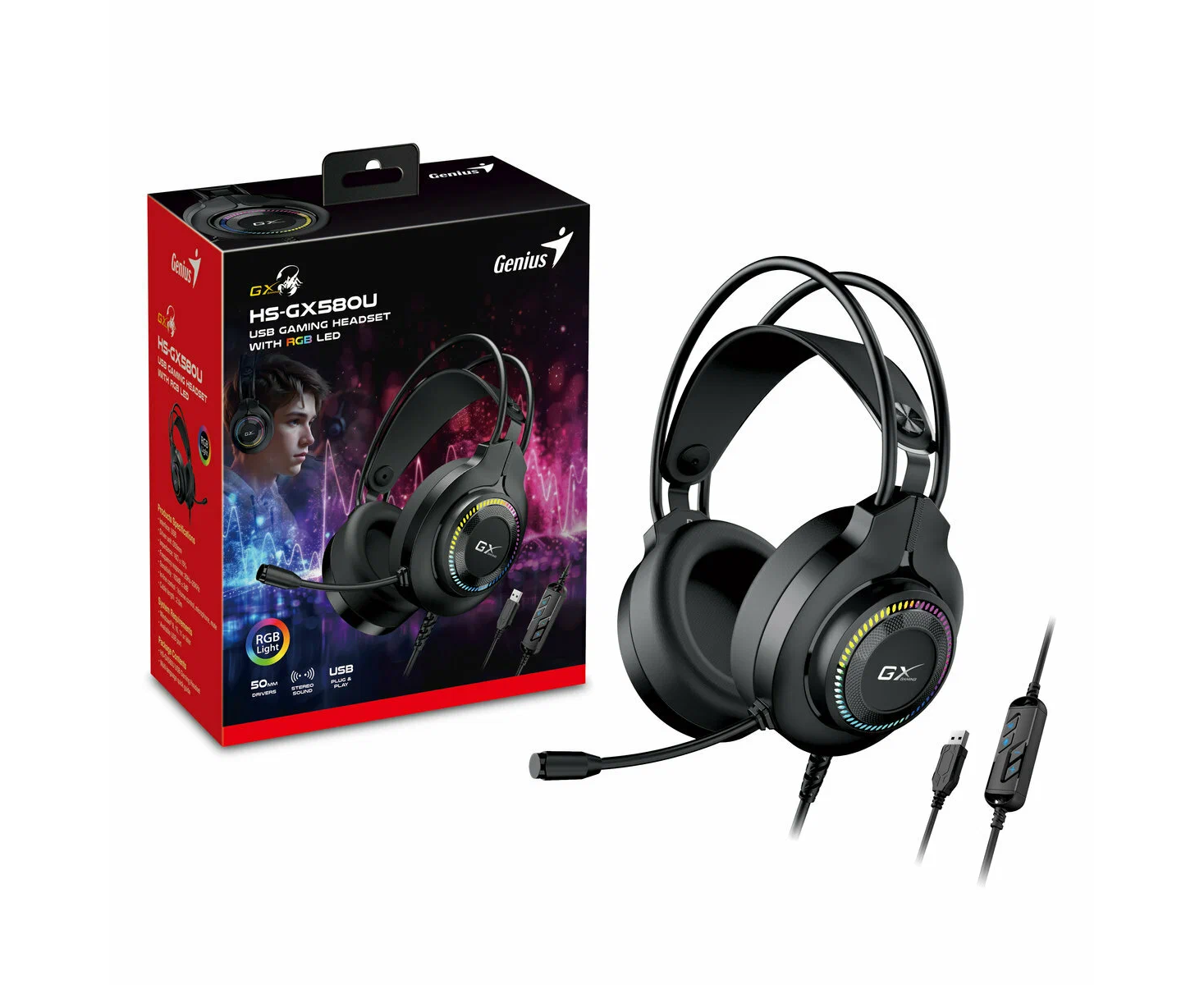 Гарнитура Genius HS-GX580U, USB, 2.0m, Black