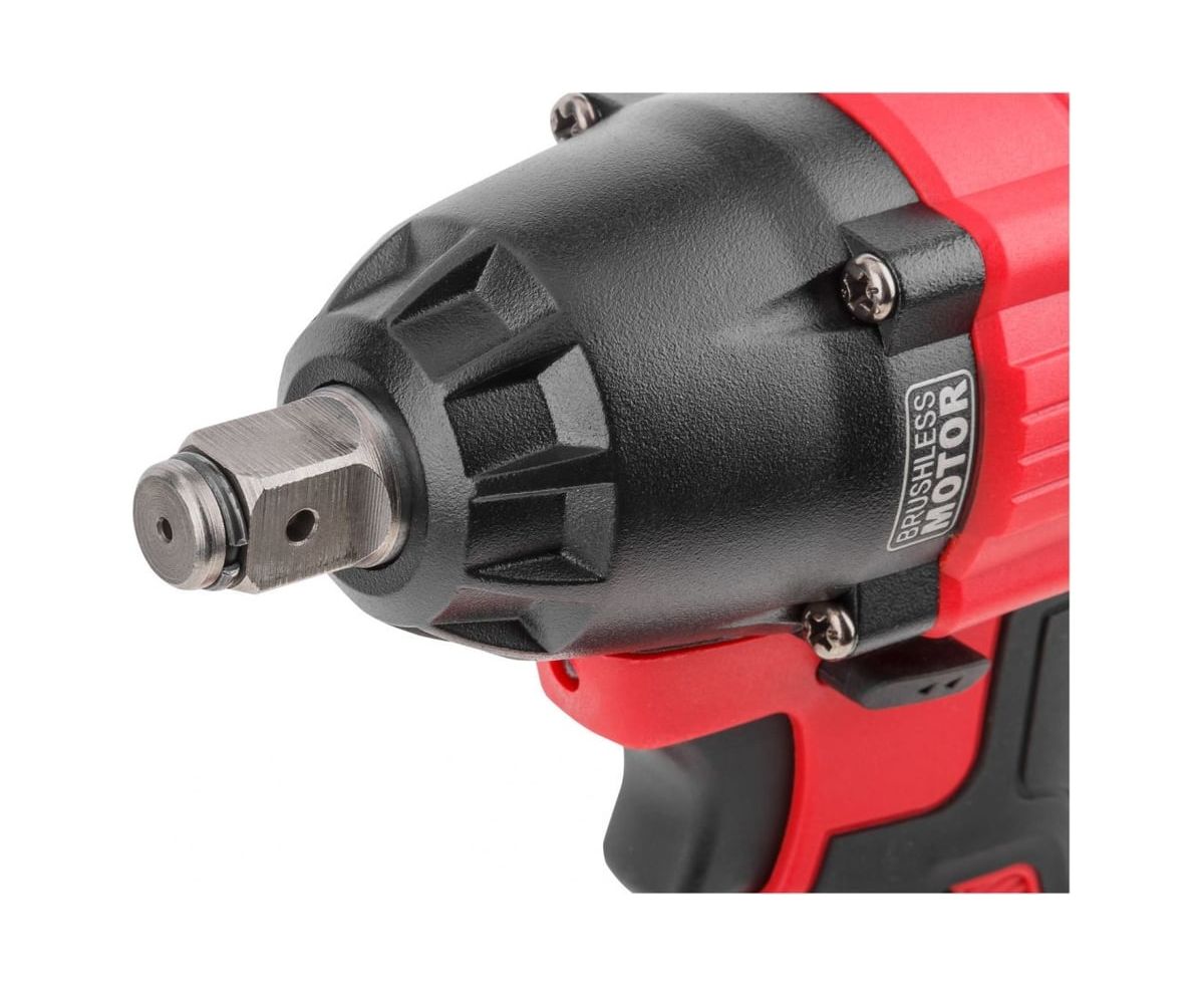 Аккумуляторный ударный гайковерт отличается высоким крутящим моментом 310 Нм, возможностью использования в местах без электроснабжения. Модель имеет бесщеточный двигатель, что способствует повышенной устойчивости к нагрузкам, обеспечивает легкость инструмента, простоту в его обслуживании. Для точности в работе гайковерт оснащен трехуровневой электронной регулировкой оборотов. Удобству пользователя способствует индикатор уровня заряда, подсветка, обрезиненная рукоятка.