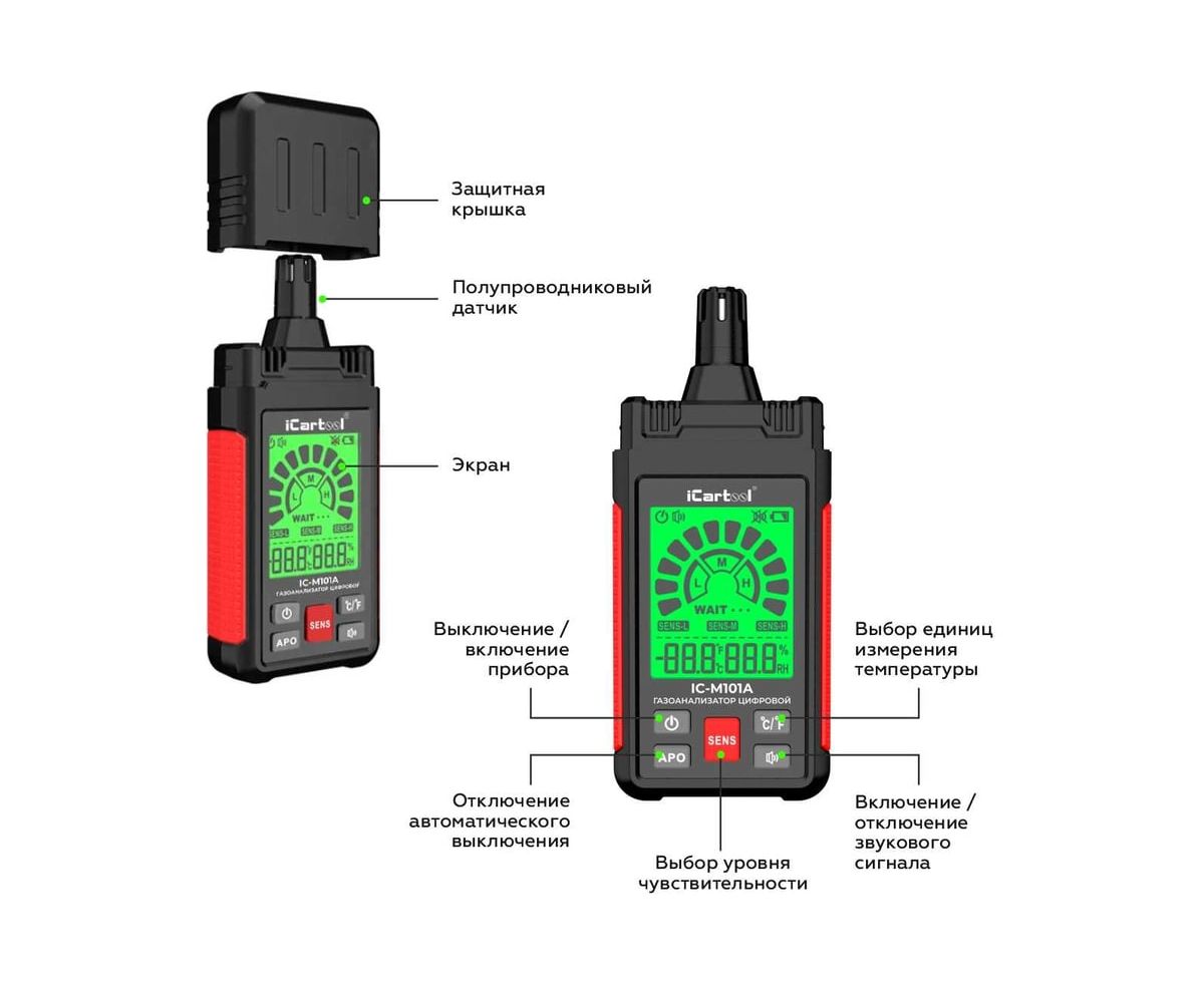 Цифровой газоанализатор IC-M101A предназначен для измерения объемной доли горючих газов, воспламеняющихся веществ и вредных паров. Контролирует превышение допустимой концентрации вредных паров в помещениях бытового и производственного назначения, а также используется для измерения температуры и относительной влажности окружающей среды.